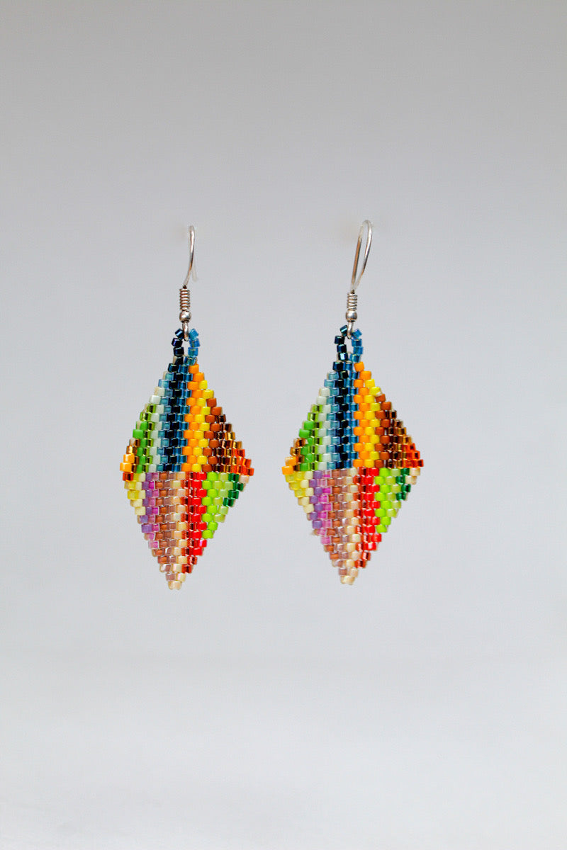 Aretes tejidos a mano con delicas de Miyuki con herrajes tipo pescador en plata.