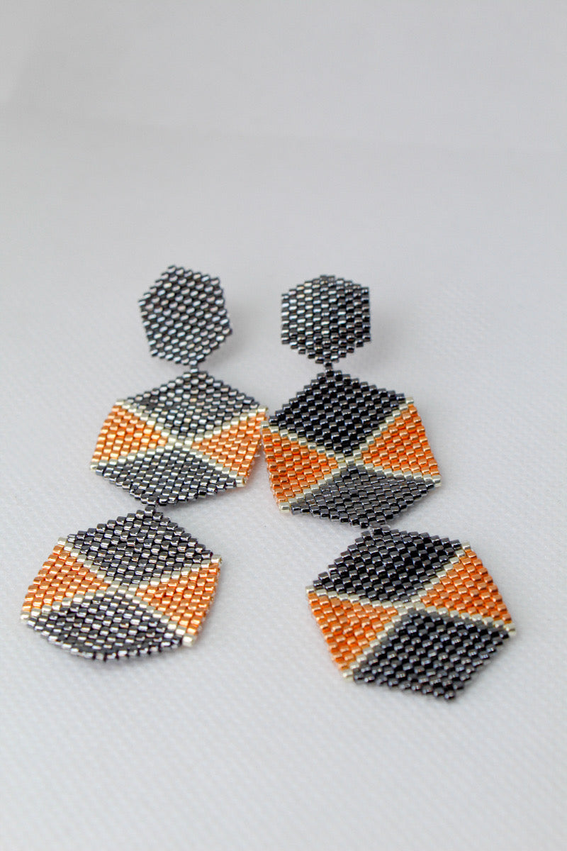 Aretes tejidos a mano con delicas de Miyuki con herrajes en plata.