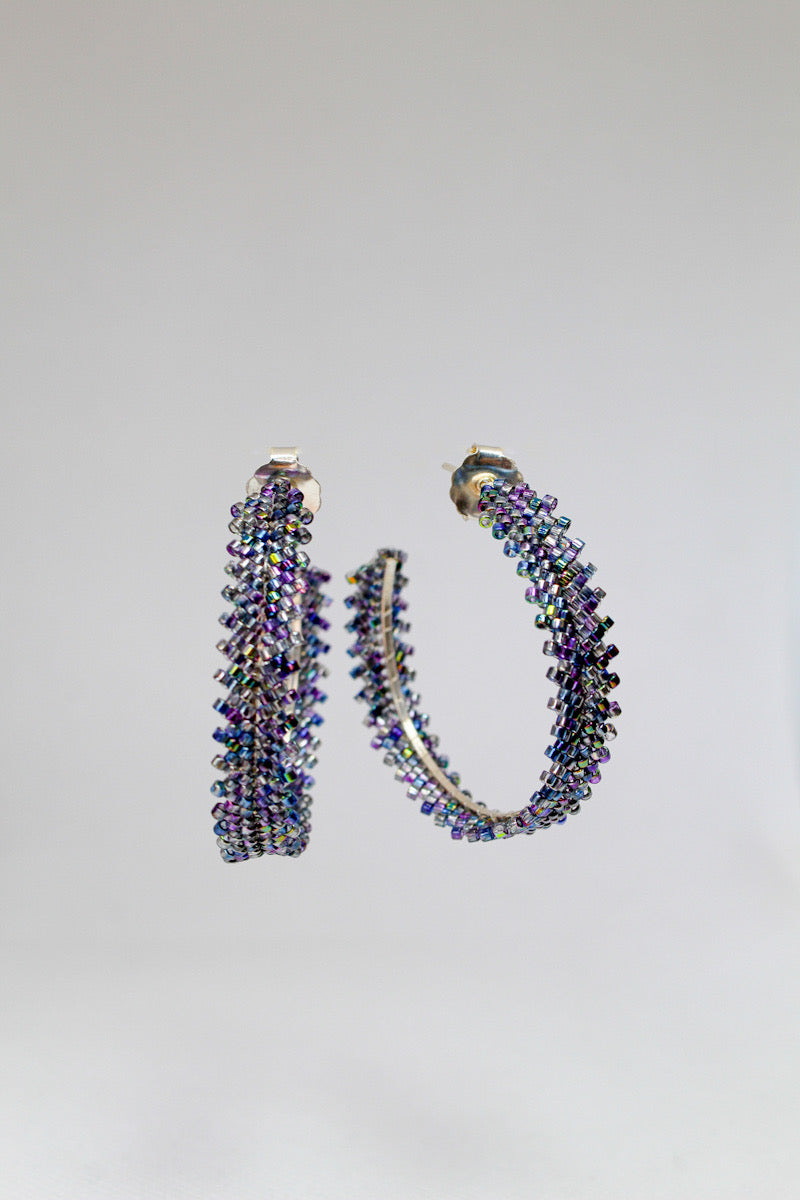 Candongas elaboradas a mano en plata 925 y tejidas con delicas de Miyuki.