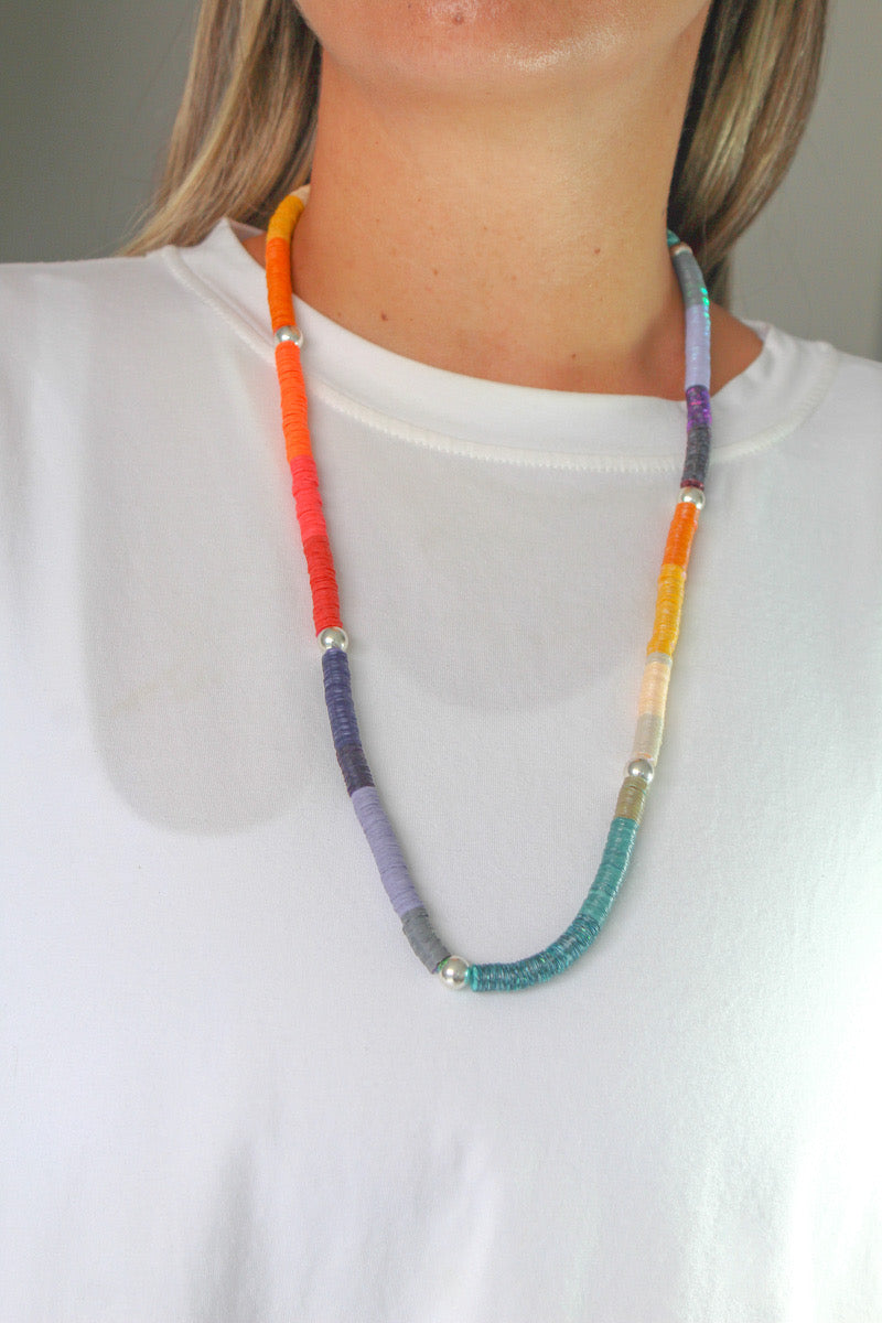 Collar en hilo y lentejuelas de colores con esferas de plata 925.