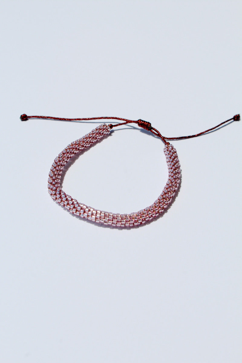 Pulseras tejidas a mano con delicas de Miyuki en forma cilíndrica, con cierre corredizo en hilo.